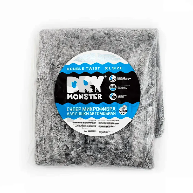 Двухсторонняя супер впитывающее микрофибровое полотенце Dry Monster Double Twist XL идеально подходит для сушки кузова автомобиля.
