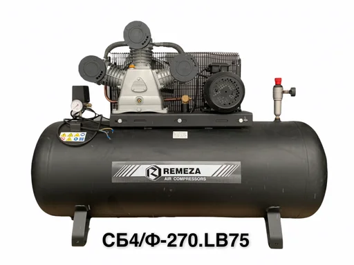 Компрессор поршневой 270.LB50 REMEZA (Белоруссия): 690 л/мин., 10 бар, ресивер 270 л., 4 кВт, 380В, габариты без упак. 1650x510x1150 мм, 180 кг.