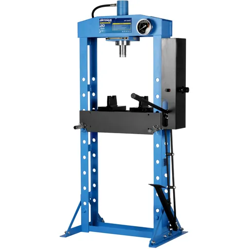 Гидравлический пресс 20 т OPTIMUS OPT-220KF оснащен современной гидравлической системой, включающей мощный цилиндр и насос с ножным приводом, что значительно снижает нагрузку на оператора и повышает удобство работы.