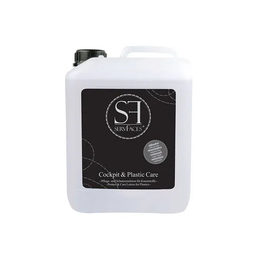 ServFaces Cockpit & Plastic Care — это эмульсия для ухода и защиты внутренних пластиковых и резиновых поверхностей вашего автомобиля. Объем 5 литров обеспечивает долговременное использование, а благодаря своим уникальным свойствам средство восстанавливает глубокий черный цвет пластиковых элементов, защищает их от выцветания, трещин и загрязнений. Эмульсия также придаёт поверхности приятный полуглянцевый эффект, улучшает её текстуру и делает её устойчивой к пыли и статическому электричеству, предотвращая повторное загрязнение.
