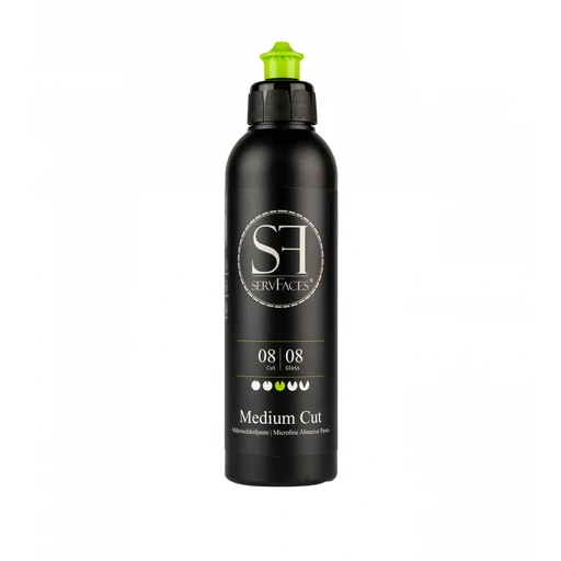 servFaces Medium Cut — полировальная паста без силикона с индексом абразивности 8.0 и блеска 8.0. Идеальный баланс между режущей способностью и финишным качеством. Удаляет следы шлифовки от P2000, лёгкие и средние царапины, паутину и матовость ЛКП, оставляя высокий уровень блеска.