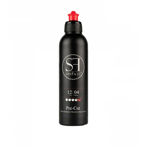 servFaces Pre-Cut — наиболее агрессивная полировальная паста в линейке servFaces с индексом абразивности 12.0 и блеска 4.0. Безсиликоновая формула предназначена для быстрого удаления глубоких царапин и следов шлифовки начиная от P1000. Это первый шаг в системе многоступенчатой полировки servFaces — после Pre-Cut обработка продолжается пастами Heavy Cut или Medium Cut для повышения уровня блеска.