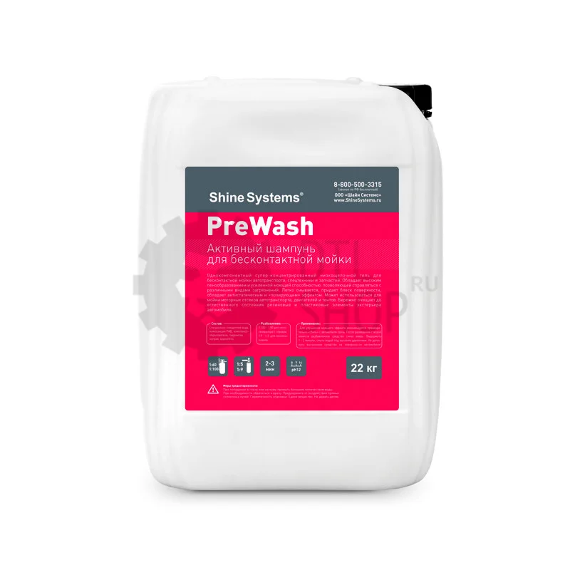 Shine Systems PreWash — это бесфосфатный низкощелочной шампунь с высоким содержанием тензидов, разработанный для предварительной бесконтактной мойки автомобиля по двух- и трёхфазной технологии. Этот шампунь эффективно удаляет типичные дорожные загрязнения, при этом мягко воздействует на материалы экстерьера. PreWash отличается высоким пенообразованием и устойчивостью к жёсткой воде, что делает его идеальным для использования в любых условиях, включая регионы с богатой железом водой.