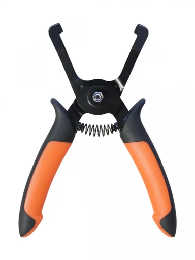 Конструкция с изогнутыми захватами обеспечивает удобный доступ к труднодоступным соединениям и позволяет аккуратно отсоединять элементы без повреждения деталей. Пружинный механизм облегчает работу и повышает скорость выполнения операций. Эргономичные рукоятки обеспечивают надежный хват и комфорт при работе.