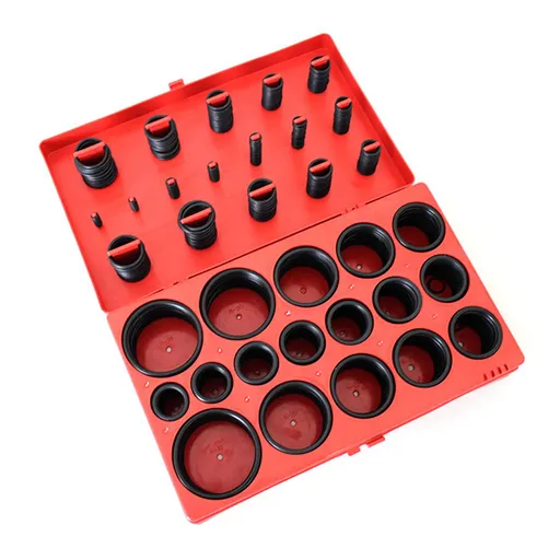 В комплект входит 32 различных размера колец с внутренним диаметром от 3 до 50 мм, благодаря чему этот набор подходит для множества применений, от подвижных и неподвижных соединений в гидравлических и пневматических системах до топливных и смазочных узлов.