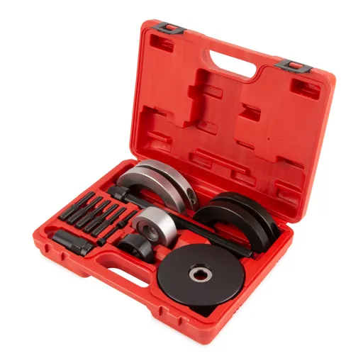 Его ключевое преимущество - возможность провести все работы (выпрессовку и запрессовку) без демонтажа поворотного кулака и стойки, что значительно экономит время и силы при ремонте ходовой части.
