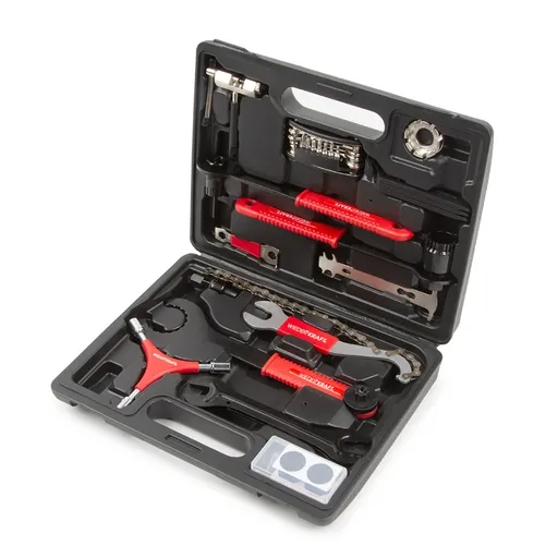 Комплект инструментов от WiederKraft WDK-21805 поможет вам осуществить быстрое и качественное обслуживание или ремонт велосипеда. В удобном пластиковом кейсе умещаются 38 полезных инструментов, которые должны быть у каждого велосипедиста.