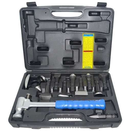 Набор для рихтовки корпуса автомобиля WiederKraft WDK-65081 предназначен для проведения кузовного ремонта на завершающей стадии. Инструменты набора выполнены из прочных и стойких к нагрузкам материалов. Рукоятка рихтовочного молотка изготовлена из пластика. Комплект поставляется в пластиковом кейсе.