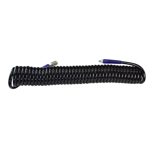 Пневматический спиральный шланг длиной 10 метров, с диаметром 10 мм внутренний и 14 мм внешний, оснащен быстроразъемными соединениями (БРС).