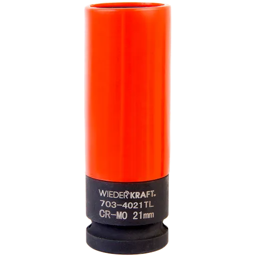 Головка торцевая ударная тонкостенная (21 мм; 1/2DR) WiederKraft WDK-703-4021L применяется при проведении слесарных работ для демонтажа/монтажа резьбовых соединений с помощью инструмента ударного действия (пневматические и электрические гайковерты). Изготовлена из стали 42Cr-Mo, устойчива к динамическим нагрузкам и обладает повышенными прочностными характеристиками.