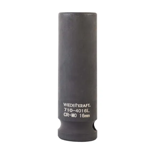Головка торцевая ударная глубокая 6-гранная (16 мм; 1/2DR) WiederKraft WDK-710-4016L применяется при проведении слесарных работ для демонтажа/монтажа резьбовых соединений с помощью инструмента ударного действия (пневматические и электрические гайковерты). Изготовлена из стали 42Cr-Mo, устойчива к динамическим нагрузкам и обладает повышенными прочностными характеристиками.
