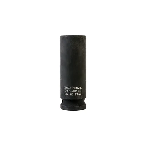 Головка торцевая ударная глубокая 6-гранная (19 мм; 1/2DR) WiederKraftWDK-710-4019L применяется при проведении слесарных работ для демонтажа/монтажа резьбовых соединений с помощью инструмента ударного действия (пневматические и электрические гайковерты). Изготовлена из стали 42Cr-Mo, устойчива к динамическим нагрузкам и обладает повышенными прочностными характеристиками.