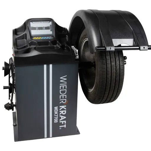 Балансировочный станок WiederKraft WDK-770B для обслуживания легкового и легкого коммерческого транспорта с максимальным диаметром колёс до 1000 мм. Предназначен для измерения и устранения дисбаланса у колёс с дисками диаметром от 10 до 24 дюймов в шиномонтажных мастерских, автосервисных предприятиях и станциях технического обслуживания. Наличие электронной линейки с измерением двух параметров (расстояние и диаметр диска) и возможность запуска цикла балансировки закрытием кожуха обеспечат скорость работы, что особенно важно в шиномонтажный сезон. Широкое опорное основание, специальная конструкция виброузла и вал с увеличенным диаметром 40 мм гарантируют надежность оборудования и высокую точность балансировки ±1 г. Защитный кожух, выполненный из высокопрочного пластика, защитит оператора от мелких камней и грязи при вращении колеса. WDK-770B работает от бытовой сети 220 вольт и может быть использован даже в небольших мастерских, где отсутствует трёхфазное подключение. Комплектация балан
