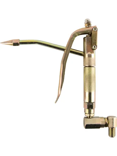 Встроенный коленчатый механизм обеспечивает подвижность пистолета при подаче смазки, конусная насадка в комплекте может быть заменена на лепестковую.
