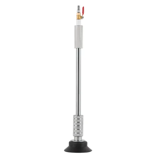Пневматическая вакуумная присоска с обратным молотком предназначена для бесконтактного локального вытягивания вмятин на кузовных панелях. Создание вакуума обеспечивает надёжное сцепление с гладкой поверхностью без сварки или механического крепления. Встроенный или совмещённый обратный молоток позволяет прикладывать ударные усилия к присоске, передавая импульс к месту деформации. Подходит для работ с тонколистовым металлом, где важно сохранить лакокрасочное покрытие. Используется в автосервисах как альтернатива сварочным методам вытяжки, особенно на алюминиевых или оцинкованных панелях.