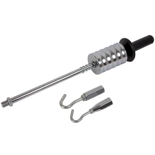 Ручной обратный молоток с крюком предназначен для локального рихтования металлических поверхностей, в том числе в труднодоступных местах. Крюк позволяет цепляться за выступы или отверстия, передавая усилие в обратном направлении. Подходит для кузовного ремонта и других работ, где требуется точечное воздействие без использования громоздкого оборудования. Усиленная конструкция позволяет эффективнее проводить работы по рихтовке кузова.