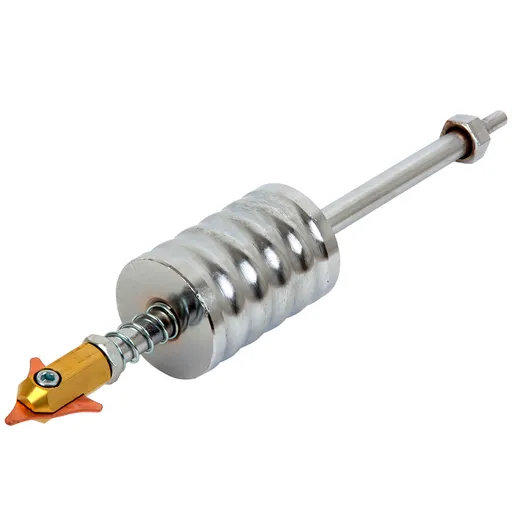 Обратный молоток для работы со споттером WiederKraft WDK-FH003 - это приспособление, с помощью которого можно вытягивать вмятины на кузове. Инструмент подключается к сварочному пистолету. Корпус изготовлен из прочной стали. На конце молотка расположена резьба к которой можно прикрепить адаптер для использования с треугольными или круглыми шайбами.
