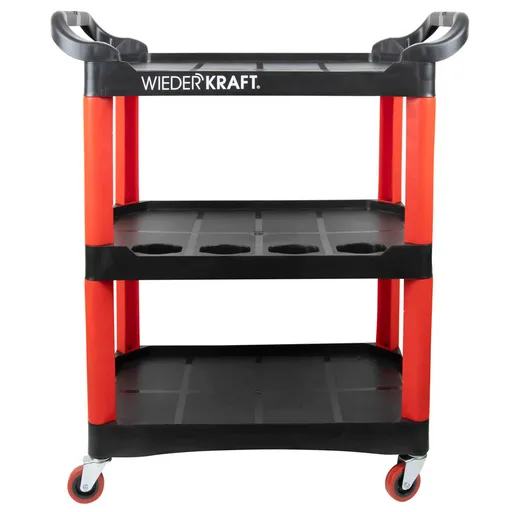 Тележка для детейлинга WIEDERKRAFT WDK-819 с тремя открытыми пластиковыми полками.