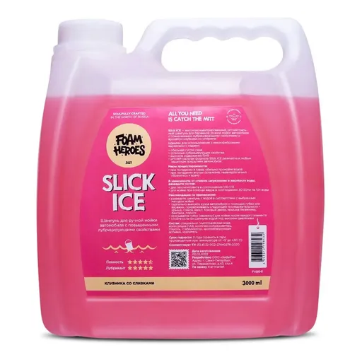 Slick Ice Sweety - высококонцентрированный pH-нейтральный шампунь для бережной ручной мойки автомобиля с повышенными лубрицирующими свойствами и ароматом клубники со сливками по мотивам знаменитого леденца, объемом 3 литра.